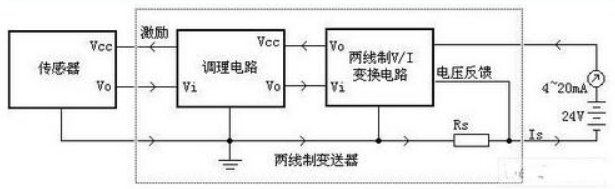 2021-09-17 06:40:47本文關(guān)鍵字:壓力傳送器 壓力傳送器主要由測量電路、過程連接件和測壓元件傳感器三部分組成。當(dāng)壓力信號作用于傳感器時(shí),壓力傳感器將壓力信號轉(zhuǎn)換成電信號,經(jīng)差分放大和輸出放大器放大,然后經(jīng)V/A電壓電流轉(zhuǎn)換成與被測介質(zhì)的液位壓力成線性對應(yīng)關(guān)系的4-20mA標(biāo)準(zhǔn)電流輸出信號。 壓力傳送器電路圖: 壓力變送器為什么要采用電流信號呢?因?yàn)椴捎秒娏餍盘柕脑蚴遣蝗菀资芨蓴_,常取2mA作為斷線報(bào)警值。并且電流源內(nèi)阻無窮大,導(dǎo)線電阻串聯(lián)在回路中不影響精度,在普通雙絞線上可以傳輸數(shù)百米。下限沒有取0mA的原因是為了能檢測斷線:正常工作時(shí)不會低于4mA,當(dāng)傳輸線因故障斷路,環(huán)路電流降為0;上限取20mA是因?yàn)榉辣囊螅?0mA的電流通斷引起的火花能量不足以引燃瓦斯。